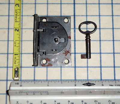 Antique Vintage old barrel skeleton key and lock furniture cabinet box desk