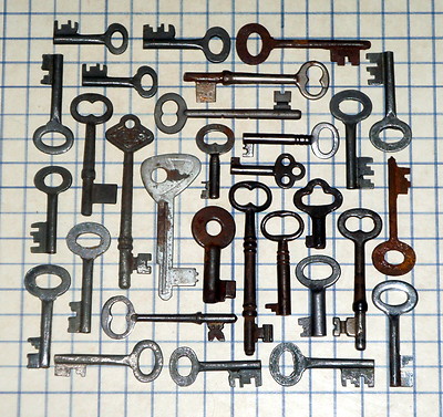 Antique Vintage old skeleton key lot furniture cabinet barrel padlock lock craft