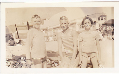 Title (ebay affiliate link): 1930's Young girl and boy pose with dad at beach vintage photo. Bathing suit