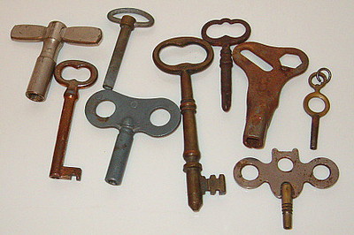Vintage & antique key lot 9 piece clock skate skeleton brass pocket watch