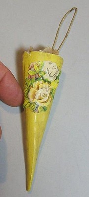 Title (ebay affiliate link): Old Christmas Tree Ornament, Paper Cornucopia w/ Flower Die-Cut