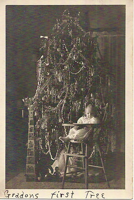 Title (ebay affiliate link): RP Christmas Photo. Boy in High Chair. Tree and Wooden Block Set.