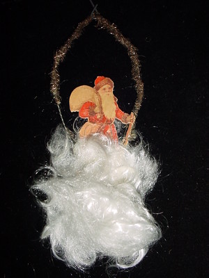 Title (ebay affiliate link): 6" ANTIQUE VICTORIAN TINSEL & SCRAP SANTA SPUN GLASS CHRISTMAS ORNAMENT