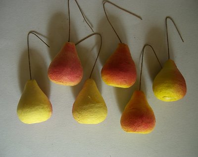 6 OLD SPUN COTTON PEARS Christmas Tree Ornaments