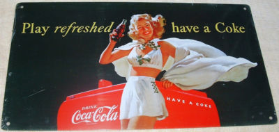 *METAL SIGN * COCA-COLA * PLAY REFRESHED * Blonde Girl & red cooler