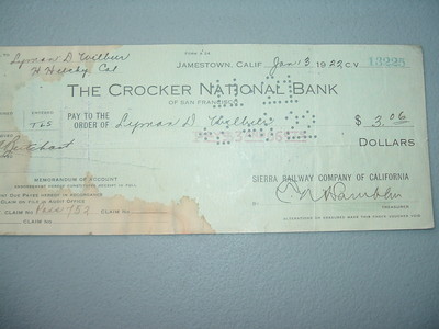 Title (ebay affiliate link): 1922 Jamestown/Hetchy/Sonora,California"Sierra Railway Crocker Bank Signed check