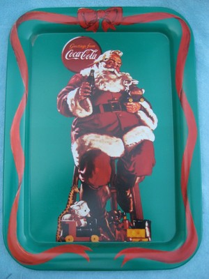 Title (ebay affiliate link): Coca-Cola Coke "Santa With Bunny" Litho on Tin Christmas Tray