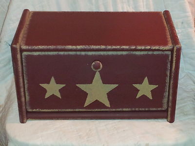 Title (ebay affiliate link): primitive americana bread box burgundy country farm house kitchen star decor