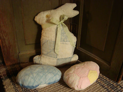 Title (ebay affiliate link): ANTIQUE OLD AND WORN PATCH QUILT RABBIT AND EGGS ~ PRIMITIVE FOLK ART