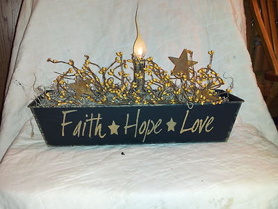 Title (ebay affiliate link): primitive americana candle display, faith, hope, love country farm house star