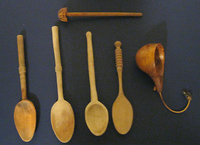 6 Vtg Antique Kitchen PRIMITIVE WOODEN SPOONS / SCOOP & MIXING TOOL Hand Carved