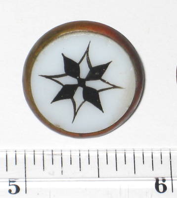 Antique VICTORIAN Painted Milk GLASS IN METAL BUTTON