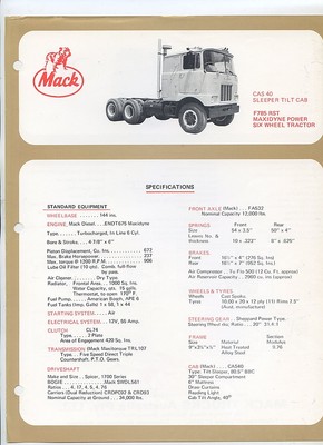Title (ebay affiliate link): MACK 1970's? F-785RST Truck Sales Brochure