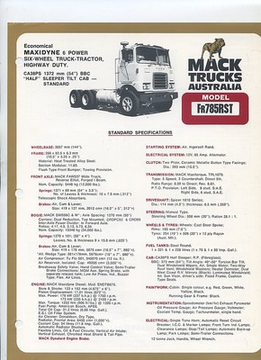 Title (ebay affiliate link): MACK 1970's? FR-785RST Truck Sales Brochure