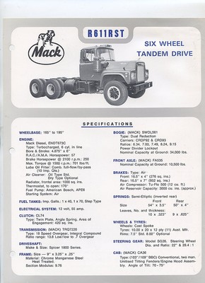 MACK 1970's? R-611RST Truck Sales Brochure