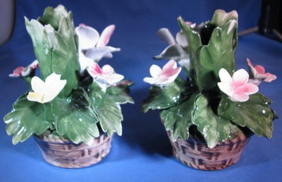 Title (ebay affiliate link): Two (2) Nuova CAPODIMONTE Beautiful Pink Roses Basket & Candleholder w/ COA A