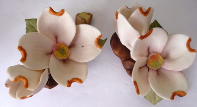 2 Golden Crown E&R Dogwood Flower Branches Italy Capodimonte Style