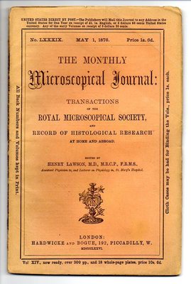 Title (ebay affiliate link): Monthly MICROSCOPICAL JOURNAL,May 1876. No 89.Moller's Diatomaceen-Probe-Platten