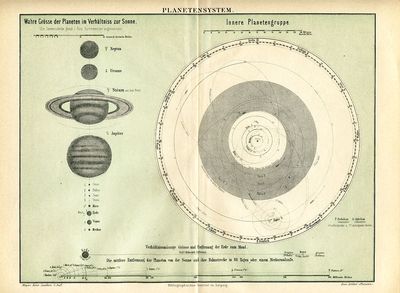 1889 SOLAR SYSTEM PLANETS ASTRONOMY Antique Map