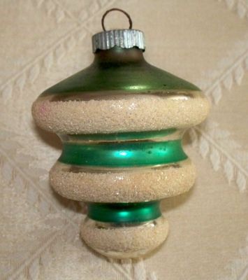 Title (ebay affiliate link): Vintage Silvered Tornado-Shape Shiny Brite ornament, pastel stripes & white mica