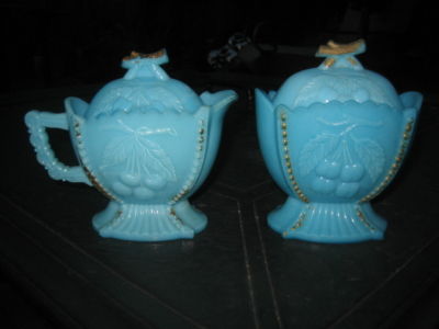 Westmoreland Cherry Grape BLUE MILK GLASS Creamer Sugar
