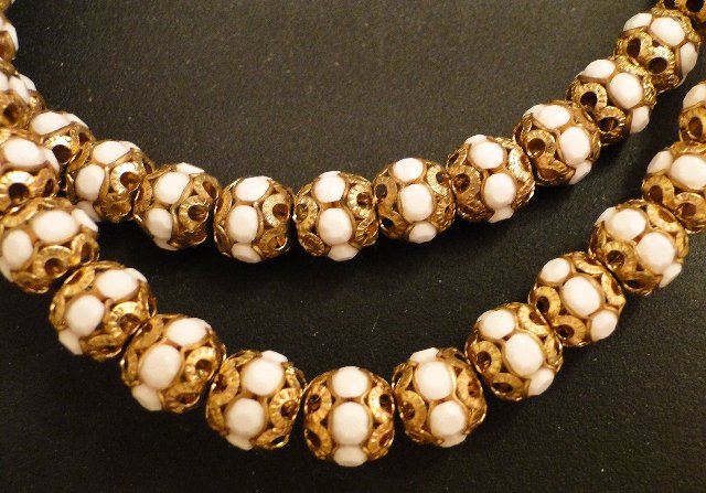 Vintage Long Necklace w/ MILK GLASS and Roundettes