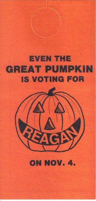 Title (ebay affiliate link): EVEN THE GREAT PUMPKIN IS VOTING FOR REAGAN ON NOV. 4 CAMPAIGN DOOR HANGER