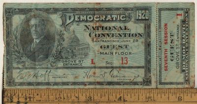 Title (ebay affiliate link): Orignal Ticket June 28, 1920 Democratic National Convention San Francisco