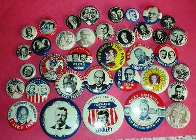 Title (ebay affiliate link): 35 Political Buttons, Pin backs largest 2.25" smallest 1" 1968 Reproductions