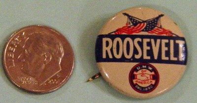 Title (ebay affiliate link): Franklin Roosevelt Presidential Campaign Button Pin Back Antique Political UMW