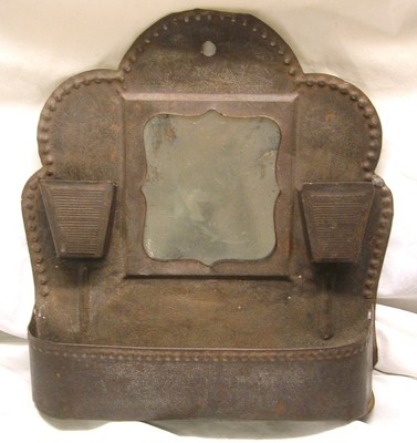 Title (ebay affiliate link): Antique Primitive Hand forged Tin Wall Pocket with Mirror for Comb & Brush
