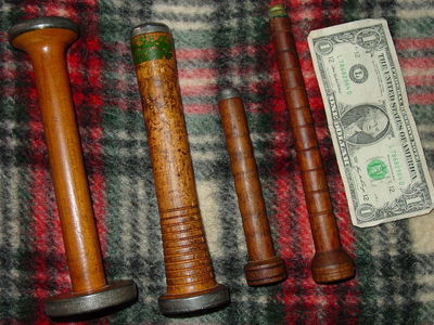 Title (ebay affiliate link): Lot of 4 Antique Primitive Old Textile Spool Bobbins 5" - 8"