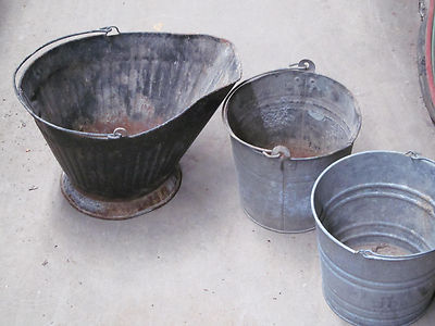 Title (ebay affiliate link): Coal bucket + 2 buckets antique primitive farm garden art planters