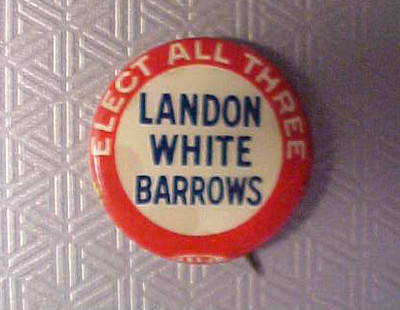 LANDON WHITE BARROWS BADGE Pin Button ME COATTAIL 1936 Roosevelt MAINE Campaign