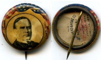 McKinley button photo 7/8" celluloid Whitehead & Hoag last patent July 21, 1896