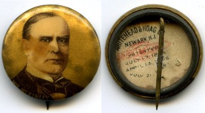 McKinley button photo 7/8" celluloid Whitehead & Hoag last patent July 21, 1896