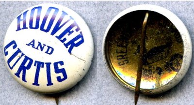 Hoover and Curtis button 13/16" lithographed blue on white Greenduck Chicago