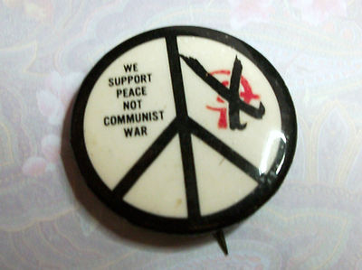 Title (ebay affiliate link): RARE 1960's ANTI-WAR BUTTON -- WE SUPPORT PEACE NOT COMMUNIST WAR