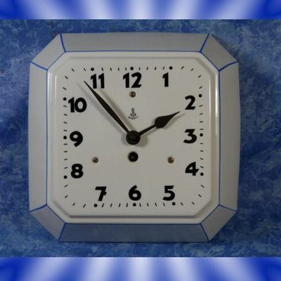 "GUSTAV BECKER"ABSOLUTELY RARE OCTAGONAL EARTHENWARE BLUE LINE;8 DAY WALL CLOCK