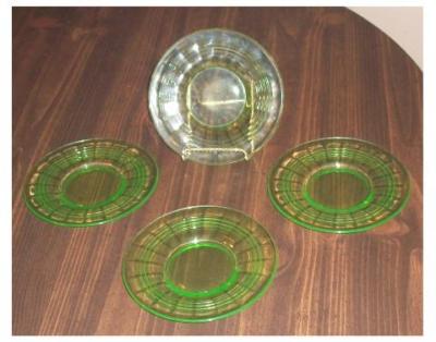 4 CIRCLE GREEN 6" SHERBERT PLATES/SAUCERS HOCKING GLASS
