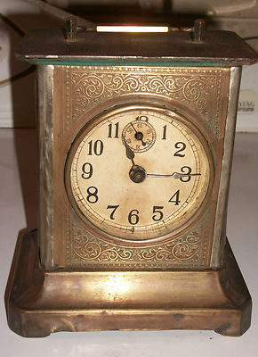 ANTIQUE GERMAN MUSICAL CARRIAGE ALARM CLOCK W/KEY AND GLASS SIDES