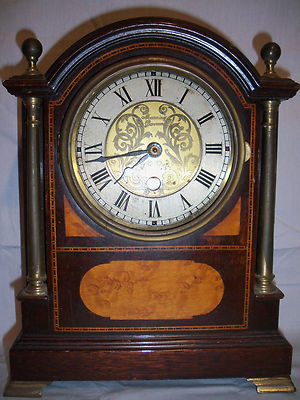 Title (ebay affiliate link): BEAUTIFUL ANTIQUE INLAID MAHOGANY MANNING BOWMAN MANTLE SHELF CLOCK