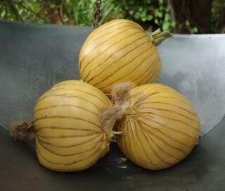 3 yellow onions, bowl filler, vegetables, ornies, veggies, primitive, folk art