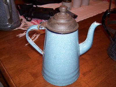 Title (ebay affiliate link): PRETTY BLUE AND WHITE SWIRL GRANITEWARE COFFEE POT, GOOSENECK SPOUT, NO RESERVE