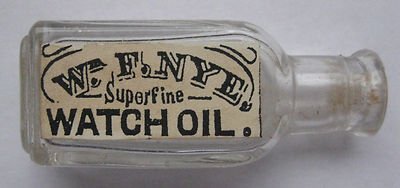 Title (ebay affiliate link): Antique Wm. F. Nye Watch Clock Oil Bottle New Bedford MA Paper Label