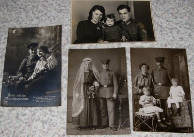 Title (ebay affiliate link): 4 REAL PHOTO POSTCARDS-WWI GERMAN SOLDIERS-BRIDE IN BLACK-IRON CROSS MEDAL-KIDS