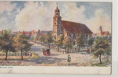 OLD NEW YORK ART POST CARD OF MIDDLE CHURCH-TUCKS