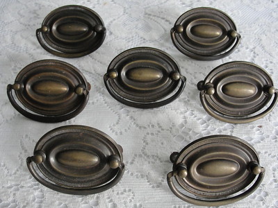 Title (ebay affiliate link): 7 Antique Oval Brass Furniture Handle Pulls 2" Hole to Hole/w/Screws
