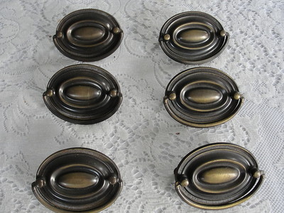 Title (ebay affiliate link): 6 Antique Oval Brass Furniture Handle Pulls 2-1/2" Hole to Hole/w/Screws
