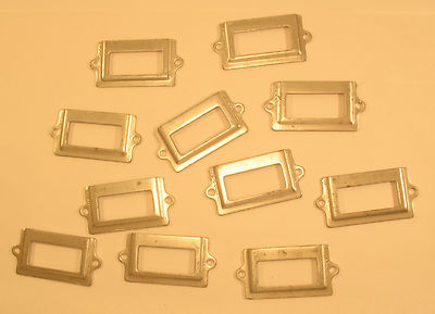 Title (ebay affiliate link): 11 Antique Vintage Library Cabinet File Card Catalog Holder Lot Metal ID Label